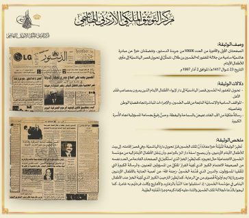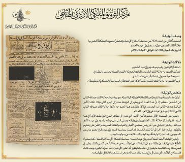 مركز التوثيق الملكي الأردني الهاشمي ينشرُ مانشيت ميلاد جلالة الملك عبدالله الثاني
