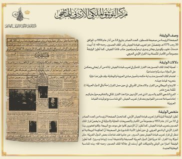 مركز التوثيق الملكي الأردني الهاشمي ينشرُ وثيقةً بمناسبة ذكرى تعريب قيادة الجيش
