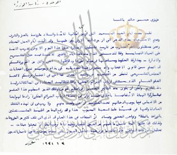 مركز التوثيق الملكي ينشر رسالة موجهة من جلالة الملك عبد الله الأول الى رئيس الوزراء حسن خالد أبو الهدى لإجراء انتخابات المجلس التشريعي الأول في عام 1929م