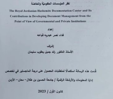 رسالةُ ماجستير تبحثُ في دور مركز التوثيق الهاشمي الأردني في الحفاظ على الأرشيف الوطني