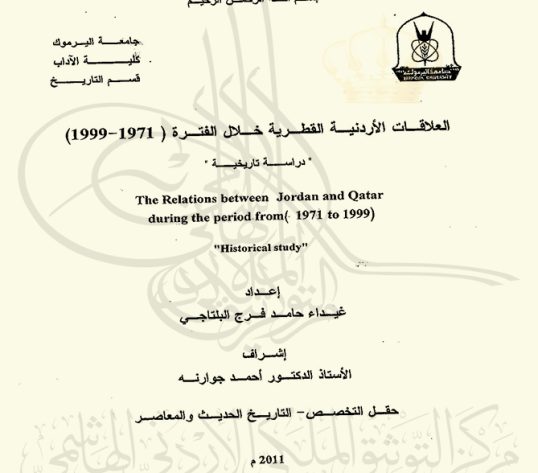قدمت هذه الرسالة استكمالاً لمتطلبات الحصول على درجة الدكتوراه في التاريخ الحديث والمعاصر، جامعة اليرموك