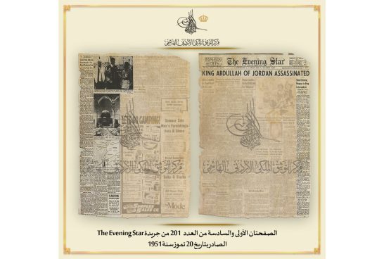 بمناسبة الذكرى الـ 72 على حادثة اغتيال الملك الشهيد عبدِالله الأوَّلِ ابنِ الحُسَين، يَنشُرُ مركزُ التوثيق الملكي الهاشمي نُسخةً مؤرشَفةً يمتلُكها من عدد ذلك اليوم لصحيفة "Evening Star" البريطانيَّة بتاريخ الـ 20 من يوليو 1951، وتكمُنُ أهميَّةُ هذا العدد تحديدًا في الوجدان الأردنيِّ عامَّةً والهاشميِّ خاصَّةً بِوَصفِهِ يحملُ على صفحته الرئيسة العنوانَ الرئيسَ الذي اختارته الصحيفةُ لنفسِها، الذي يُنبِئُ البريطانيين بوفاة جلالة المغفور له الملكِ عبدِالله الأوَّلِ ابنِ الحُسَين إثرَ حادثِ اغتيالٍ عنيف، وذلك في ذات اليوم المأساوي من تاريخ الأردن، وقد اختارت الصحيفةُ عنوانَها الرئيسَ لذلك اليوم بنبأ الاغتيال؛ إذ وضعت العنوانَ الآتي: "اغتيالُ ملكِ الأردنِّ عبدِالله".