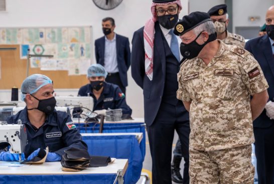 واطمأن جلالته على مستوى وقدرة الإنتاج من المستلزمات الطبية، مؤكداً ضرورة زيادة الكميات المصنعة.
