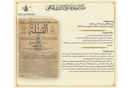 مركز التوثيق الملكي يعرض المنشور الهاشمي الرابع للثورة العربية الكبرى