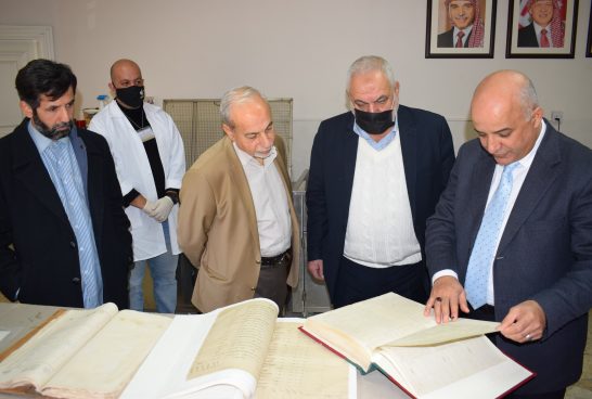 زار مركز التوثيق الملكي الأردني الهاشمي اليوم الاثنين الموافق الأول من شباط لعام 2021م، وفد من كبار تجار وأعيان عمان ممثلين بالسيد أنور الكالوتي والسيد يعقوب حميد، واطلعوا على الآليات والطرق المتبعة في الحفاظ على الوثائق والمخطوطات التاريخية النادرة وضمان ديمومتها، من خلال ترميمها ومعالجتها وحفظها الكترونياً، باستخدام أحدث المعدّات والبرامج المعدّة لهذا الشأن، كما وثمنّ الوفد الزائر الجهود المبذولة من قبل العاملين في دوائر المركز وقدراتهم في التعامل مع الوثائق والحفاظ على الإرث التاريخي لها. وبحث عطوفة المدير العام الأستاذ الدكتور مهند مبيضين واللجنة المكلّفة مع الوفد الزائر تسجيل أعمال الخير التي ينهض بها رجالات الأردن، والبدء بتوثيق السجل الخيري لكل من ساهم بعمل خيري وقدّم الدعم للمؤسسات والأشخاص، مثل ترميم المساجد، ودعم الجمعيات، وتقديم الدعم والكفالة للأيتام وغيرها من الأعمال الخيرية، ليصار الى توثيقها وإبراز أهمية الدعم الخيري في النهوض والتقدّم المجتمعيّ.